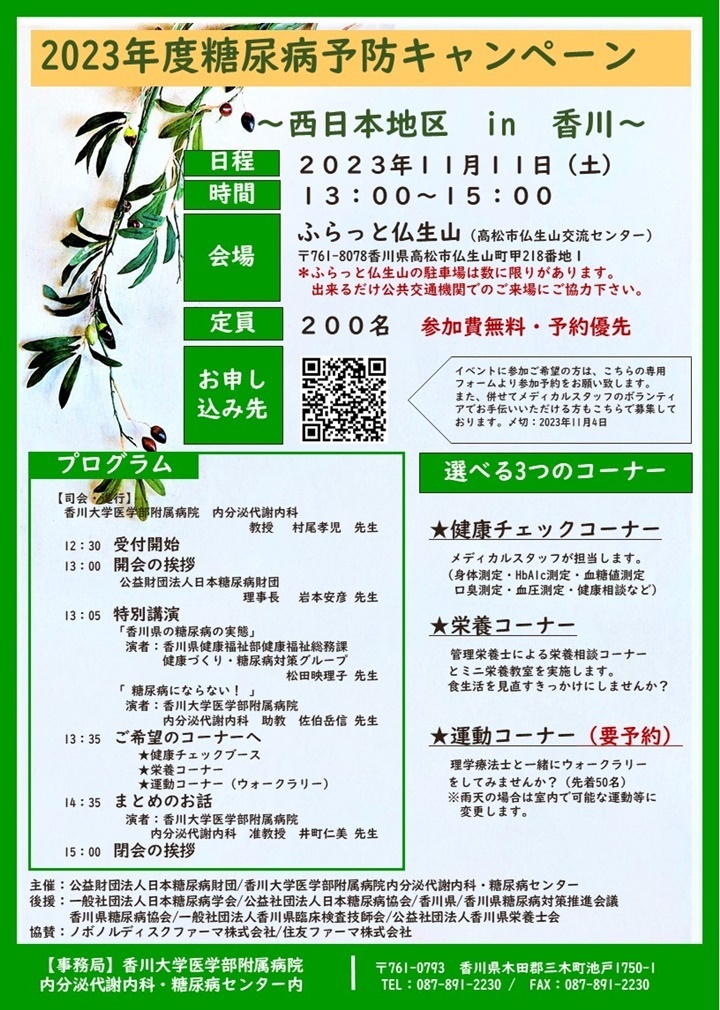 『2023年度糖尿病予防キャンペーン 西日本地区 in 香川』(2023.11.11)を開催致します