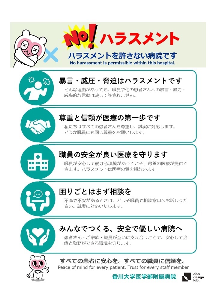 ・互いに尊重しあうことで、安心して治療・勤務ができる病院環境が守られます。