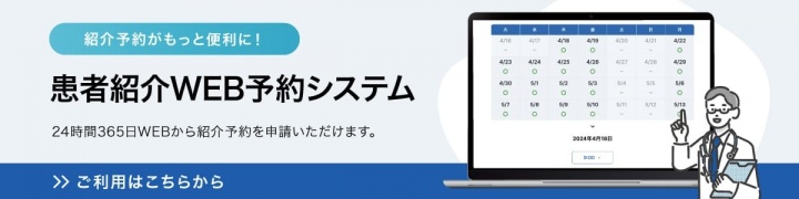 当院では令和8年1月13日より、紹介元である医療機関様、並びに患者さんの利便性向上を図るべく、オンライン予約システムを「メディグル予約」に変更しました。このシステム変更により、より簡単かつ迅速に当院への予約を行うことが可能となりました。