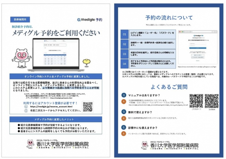 当院では、紹介状(診療情報提供書)の事前共有をお願いしております。予約申し込みはメディグル予約にて申し込みいただき、紹介状等の事前共有については、既存のFAX番号に送信してください。