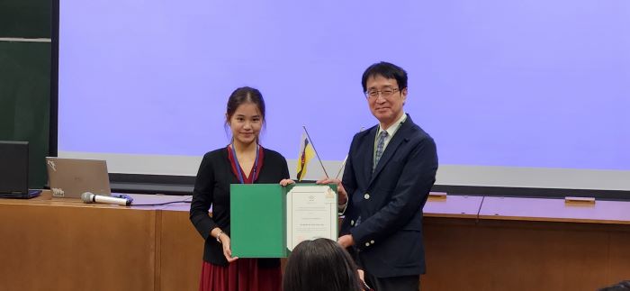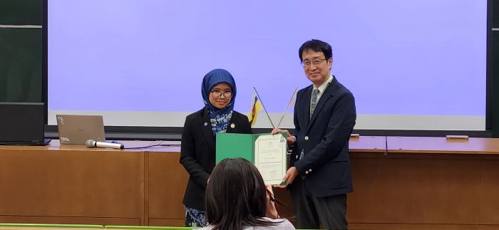 令和7年11月20日(木)、臨床講義棟1階において、「ブルネイ・ダルサラーム大学ディスカバリーイヤー2025 留学生修了式・報告会」を実施しました。 この度8月18日~11月21日にかけてブルネイ・ダルサラーム 大学より医学部生3名、の受入を行いました。 報告会においては配属講座での研究成果及び日本での生活などが発表され、参加者から活発な質疑がありました。 今後、香川大学で学んだことを活かし、母国の発展に貢献することが期待されます。