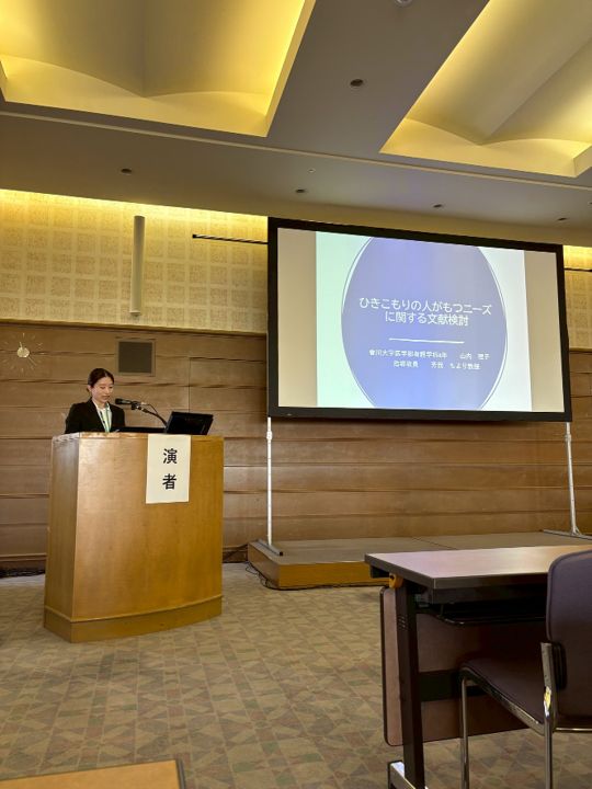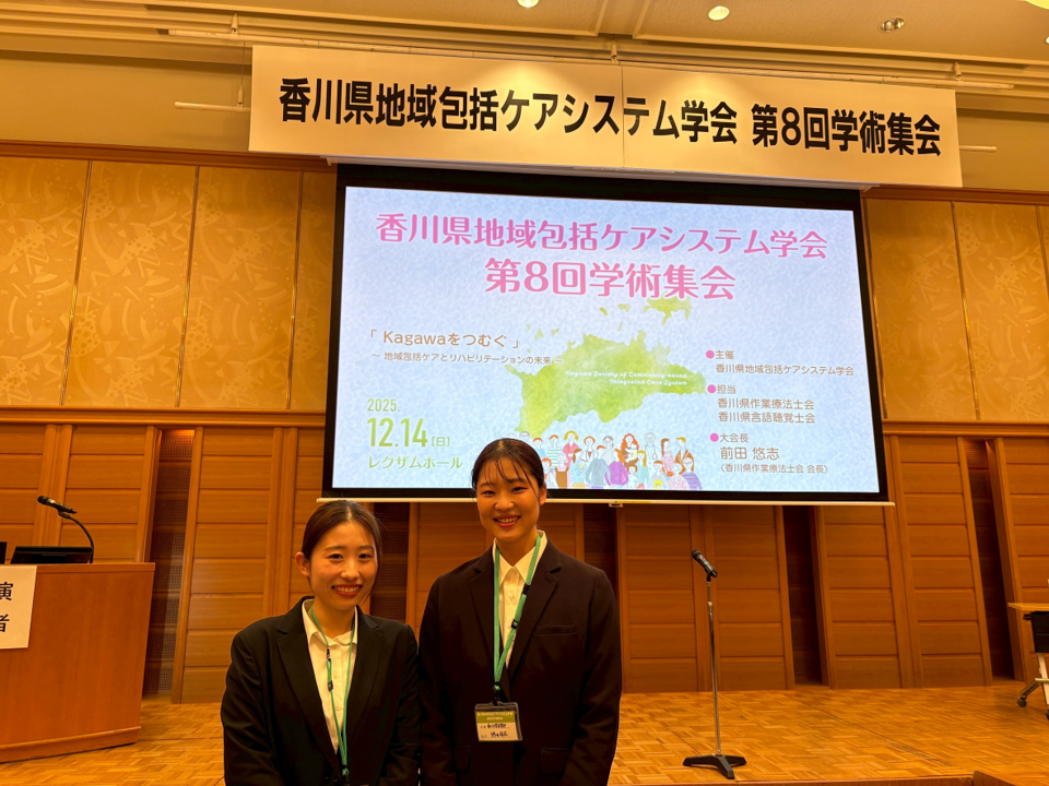 2025年12月14日に開催された香川県地域包括ケアシステム学会にて、学部生の徳田、山内が口演発表を行いました。研究タイトルは、「子ども時代の逆境体験が将来の身体機能に及ぼす影響に関する文献検討」、「引きこもりの人が持つニーズに関する文献検討」です。