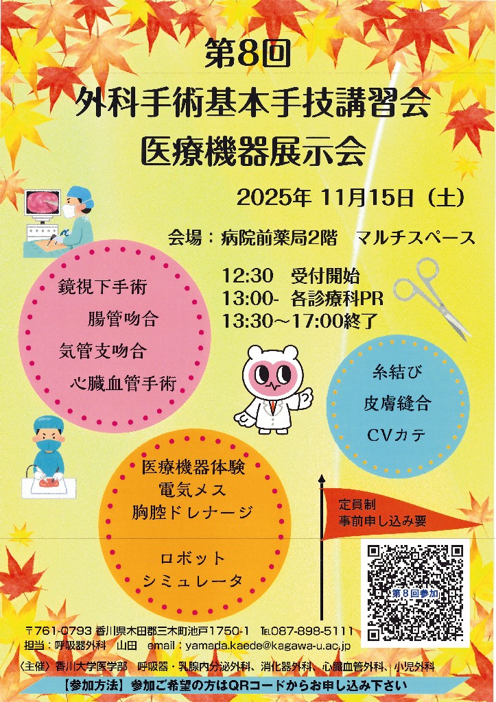 【11月開催】講習会のお知らせです香川大学では、主に研修医・医学生を対象とし、